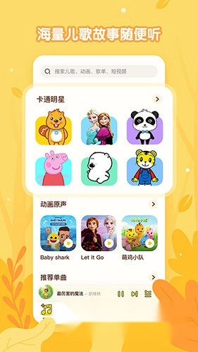 3、丰富内容可供自由选择,儿歌、故事、动画以及国学启蒙等应有尽有,是家长的放心之选。