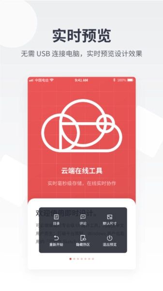 2、实时预览:即时设计无需通过USB连接电脑,即可实时查看设计效果;