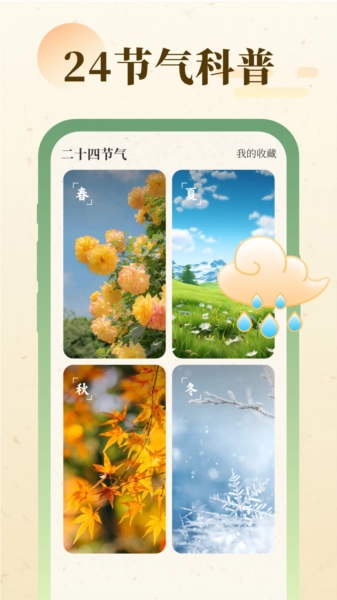 提供二十四节气的科普内容,帮助用户知晓中国传统文化以及节气的相关知识。