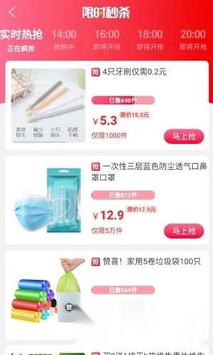 1、皮皮优购可随时参与限时抢购活动,各类优质商品均设定限定时间供用户抢购,成功抢到就等于获得实惠;