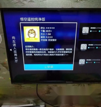 点击“悟空遥控器”,完成安装后打开它,悟空遥控器会在局域网内自动搜索可连接的智能设备,找到后点击连接。选择“阿里云盒子”时,会弹出提示“请在电视机上操作悟空遥控器”。