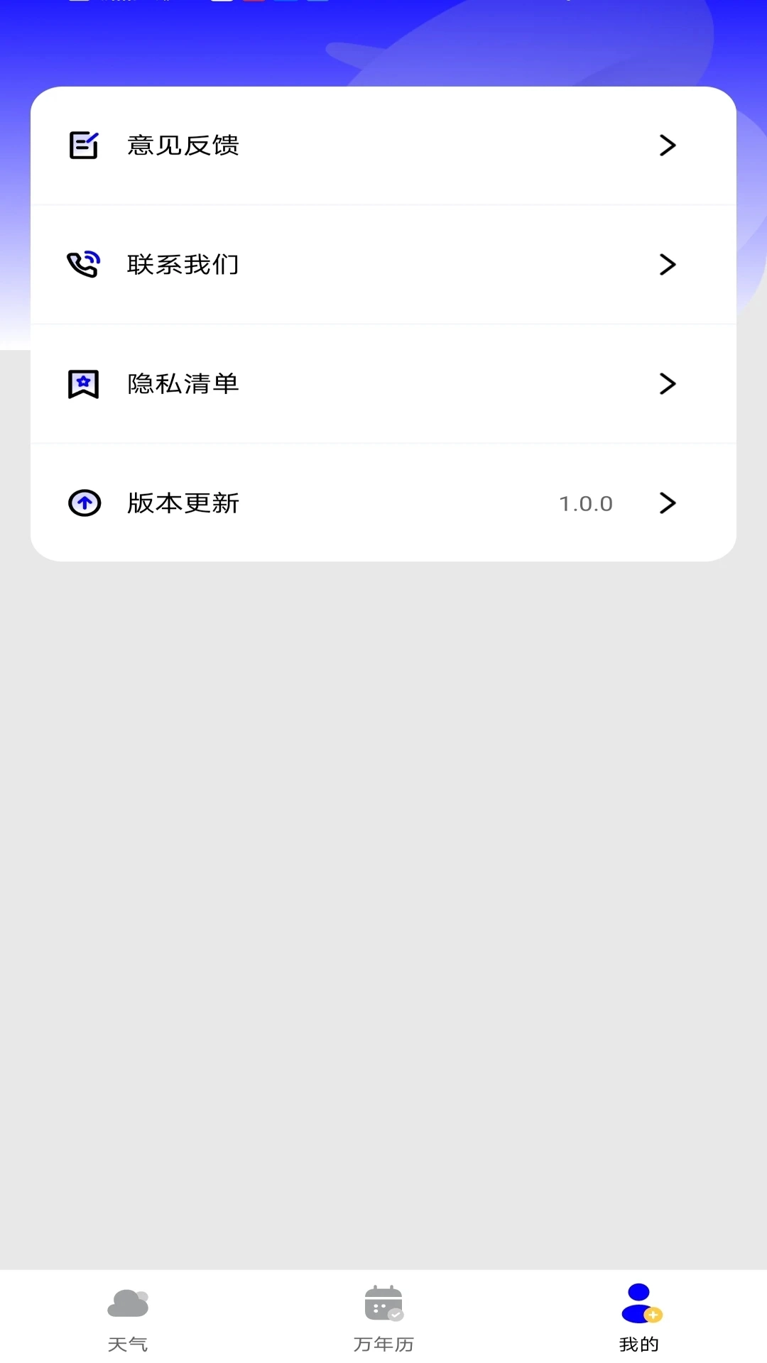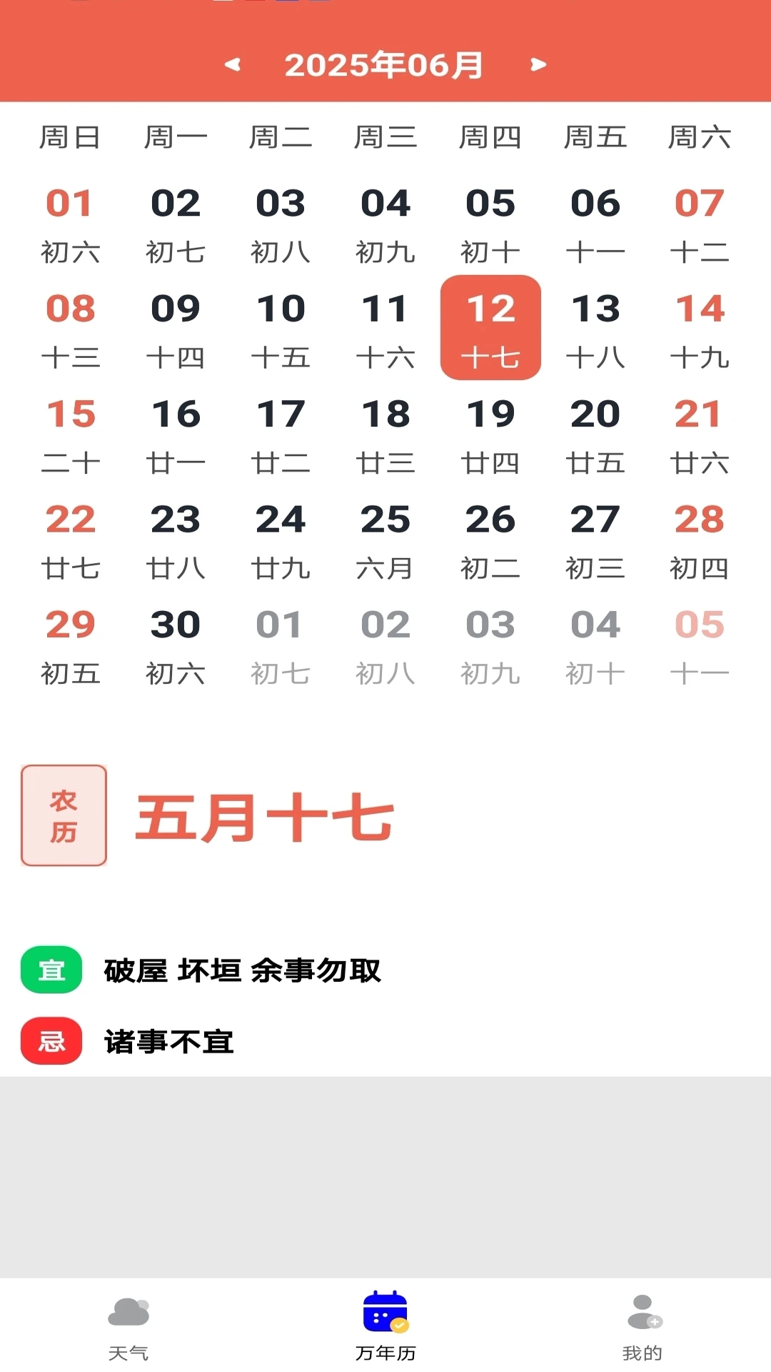 24小时天气:精准呈现逐时温度、降水概率与风力动态,让出门规划更游刃有余。15日预报:提前洞悉中长期天气走向,为旅行或重要活动筑牢准备基础。空气质量:实时追踪AQI等核心指标,守护呼吸健康无间断。生活指数:贴心涵盖穿衣、旅游、运动、防晒等多元建议,特别聚焦户外天气活动的舒适度体验。实用万年历:融合传统黄历功能,便捷查询日期、节假日及黄历宜忌,结合天气信息为生活决策添砖加瓦。墨镜天气,始终致力于为您提供清晰、实用、及时的天气资讯与生活参考,成为日常出行、健康生活的可靠伙伴。墨镜天气,随时获取天气预报,让天气变化尽在掌控!