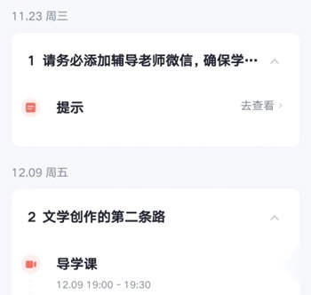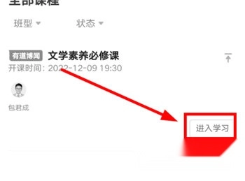 4、最后在此处选择课程就能开始学习,到了课程时间可以观看直播,也能在这里进行课程回放。
