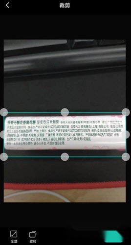 3、进入裁剪界面后,拖动相框框选需要扫描的区域,也可以点击【旋转】按钮调整角度,裁剪操作完成后,点击【下一步】继续。