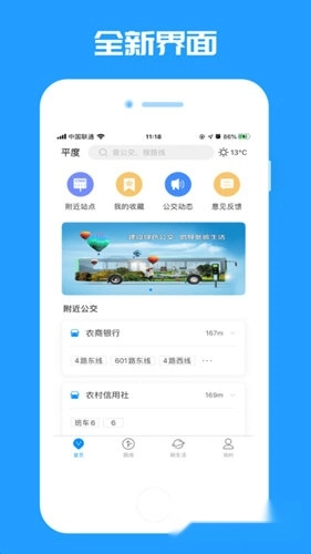 平度城市公交是一款聚焦于平度市公交查询服务的多功能应用;它能提供丰富的公交信息查询功能,用户可在线查询所需乘坐的公交线路,实时掌握公交站点、预计到站时间及距离等信息,切实帮助市民解决公交等待的困扰;提前了解公交的到站时间、首发时间等,有助于用户合理安排出行计划;此外,软件还会实时推送今日头条内容,帮助用户在等待公交时打发时间;用户输入详细地址后,系统可推荐附近的公交线路,提供更多出行选择,优化路线规划,让出行更顺畅。