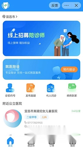 1、可以在线提交陪诊需求订单,专业陪诊师会在线接单处理。