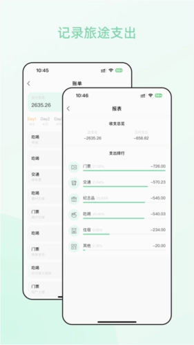 3、旅行账单:支持记录旅行账单,生成报表,让旅行花费一目了然;