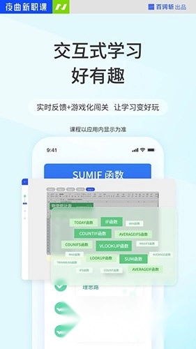 百职帮专注于职场常用的编程、表格与PPT课程教学,是职场人从入门到进阶的实用工具,也是职场学习的优选软件,零基础也能快速上手,对新手格外友好!作为百词斩旗下的职场技能学习平台,百职帮涵盖夜曲编程、百职帮Excel、PPT等多种课程,助力更多职场人掌握想学的技能,实现职场目标。掌握全部内容后,能让你在办公时拥有更轻松的操作流程;所有课程均由专业人士分享,内容详细、安全靠谱,可随时查看且完全免费。参与在线课程时,遇到疑问能实时互动,真切体验课堂乐趣,收获高效可靠的学习过程。