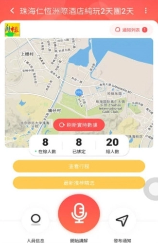 1、对旅游团内的游客信息进行绑定,实时管控游客的活动情况及其他相关信息,具有很强的实用性;