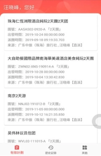 3、可将所有旅游团成员的信息直接展示在首页,以便查看最详细的旅游安排情况。