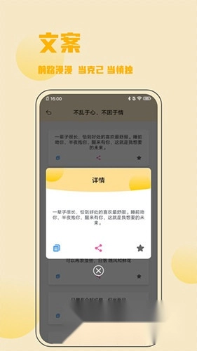 在使用过程中,我发现金句谷不仅提供了丰富多样的文案素材,而且界面设计简洁直观,操作流畅便捷。它的分类十分清晰,让我能够轻松找到自己需要的内容,极大提升了使用体验。此外,金句谷还具备个性化祝福语和美图搭配功能,让我的文案创作更加生动有趣。金句谷是一款值得推荐的文学类工具,无论是文案爱好者还是创作者,都能在其中找到所需的优质素材。