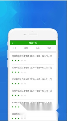 模拟考场、历年真题练习、每日一练、快速练习、考点练习、考试押题、做题记录等多种学习与做题模式、丰富多样化的陪你一起考医院三基考试。