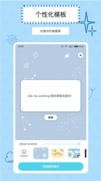 2、个性化界面配置:用户能够依据自身偏好调整提问箱的外观样式,以呈现出独有的风格特点。