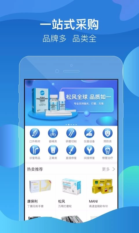 我们的采购品类十分丰富,包含口外耗材、研磨切割类产品、仪器设备以及预防类产品等多个品类。