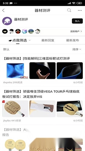 用户能够在便捷商城中选购乒乓球器材,还能查看器材的打分与测评内容。
