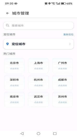 2、借助顶部的城市管理入口,能够快速切换查看不同地区的天气信息。