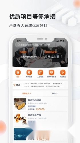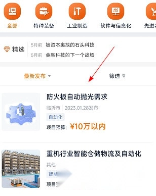 2、支持项目搜索功能,方便用户快速定位目标项目,助力合作达成。