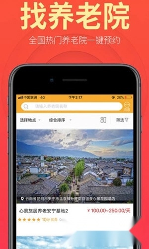 1、寻找养老院:可查询全国热门的养老院,支持一键预约并预订房间。能快速了解各养老院及老年公寓的地理位置、经营性质、房间数量、配套设施、特色优势、收费标准、服务内容、联系方式以及用户评价等信息。