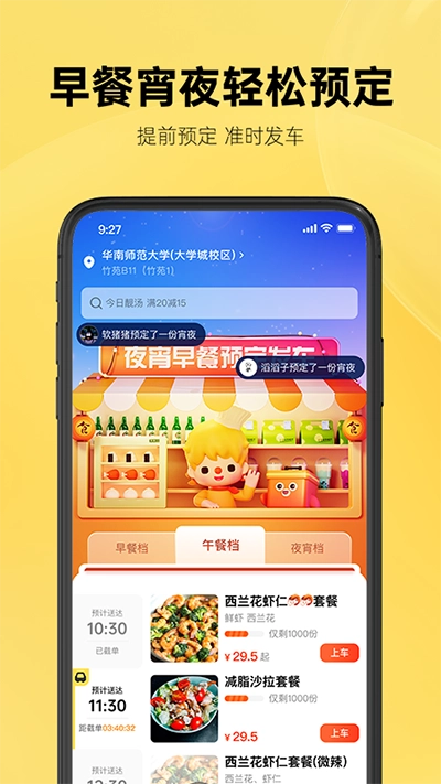 2、支持提前预定商品,无论是早餐还是宵夜,都能轻松完成预定流程,我们会准时为您送达。