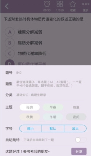 5、您可以根据喜好设置主题与字号,让习题作答体验更舒适;