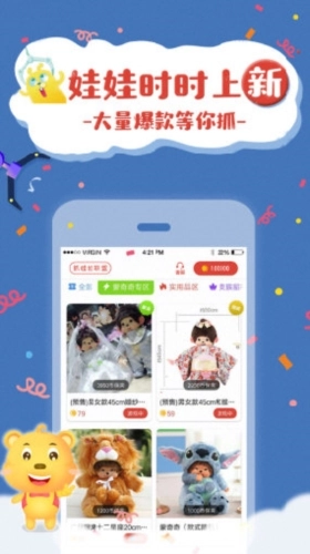 娃娃不断更新,超多爆款等你抓:平台会定期推出新款娃娃,还有大量热门爆款产品让玩家抓取,始终保持新鲜感。