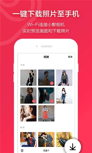 通过WiFi与连接,实时预览画面,一键照片至。