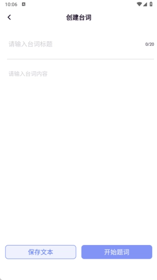 2、在创建台词页面填写台词标题和内容后,点击“开始题词”按钮。