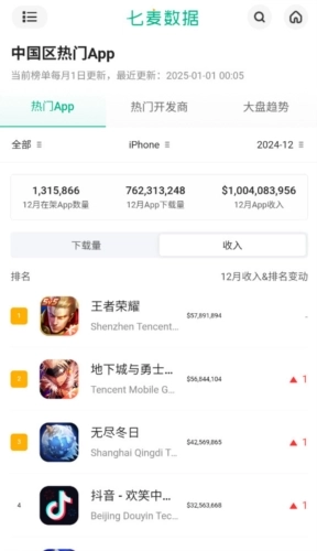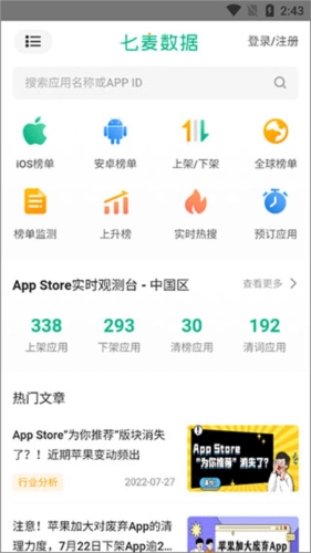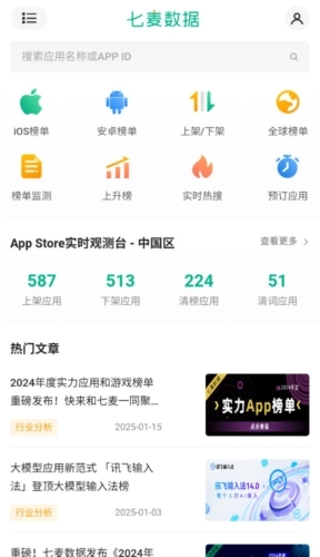 1、七麦数据的榜单区功能十分丰富,覆盖范围广泛,整合了各类榜单、应用上下架动态以及监控功能,呈现的数据清晰直观。
