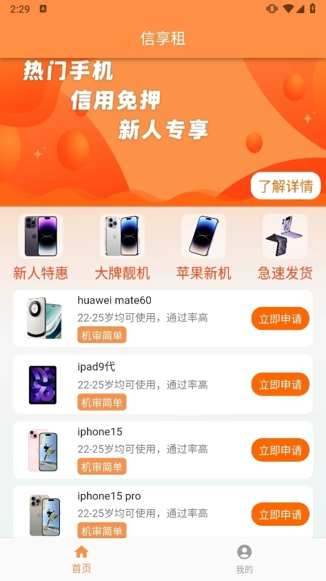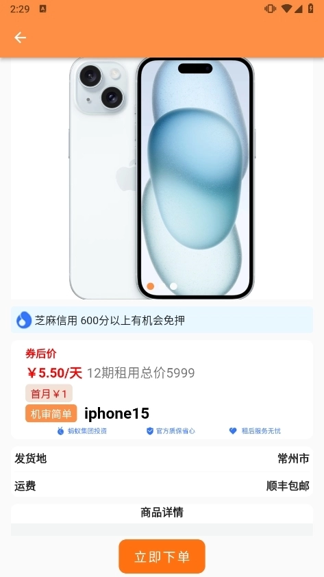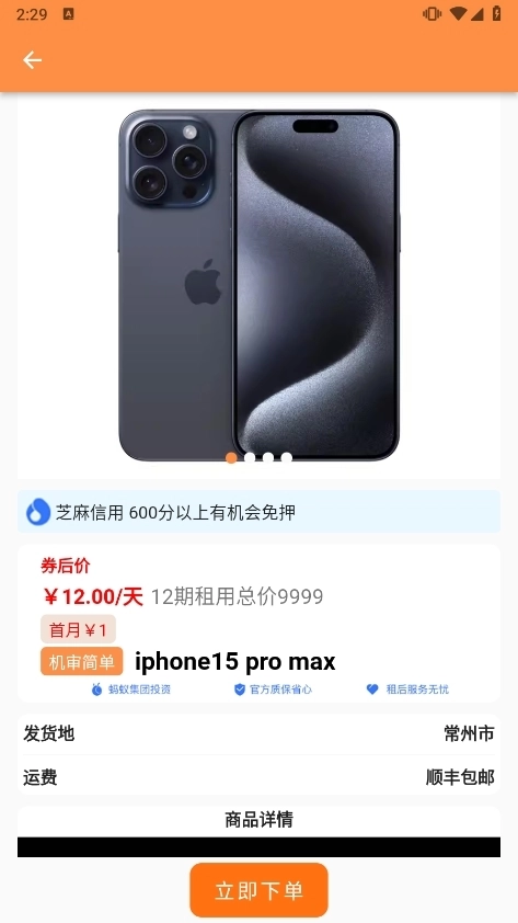 3、信用免押:借助信用评估,在线即可享受免押金租赁的福利。