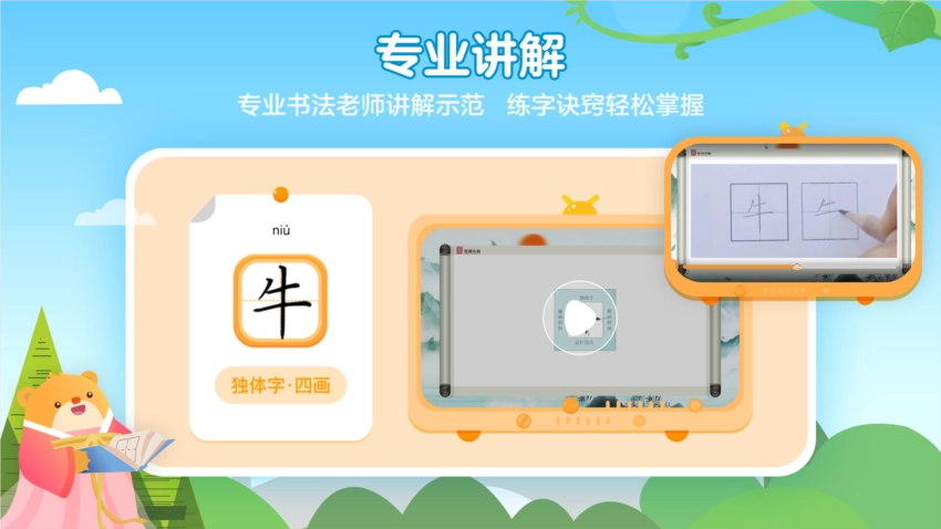 寓学于乐:构建“学、写、练”完整闭环,由真人教师亲自示范,有效激发孩子的学习兴趣,让他们真正爱上练字。