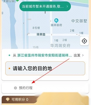 1、进入叫了个车的首页,点击“预约行程”。