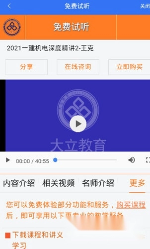 7、试听服务。大立教育在全国范围内开设免费公开课与现场试听课,学员可随时到场体验学习,满意后再办理缴费手续;对于因工作繁忙无法亲临现场的学员,还能通过远程网络学习平台进行试听,真正实现学习不受时间与空间的限制。