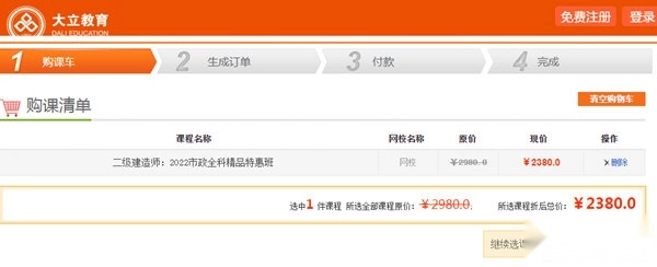 2、点击【立即购买】后会自动跳转,接着选择课程并点击【去报名】,最后完成款项支付。