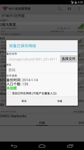 2、WiFi连接管理器支持随时暂停搜索,便于用户浏览数量较多的扫描结果。