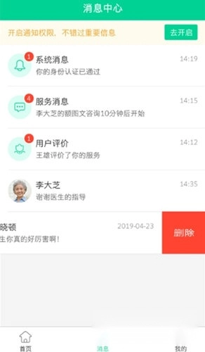 6、点击“咨询服务”选项,就能看到患者的咨询消息,点击消息即可进行回复。