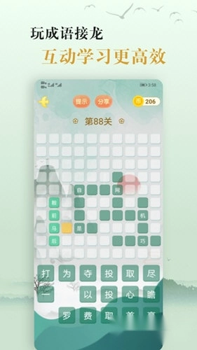 3、软件成语接龙、成语消除、看图猜成语等互动学习功能,能够有效激发中小学生学习成语的兴趣。