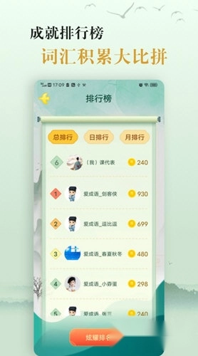 5、成就排行榜,词汇积累大比拼。