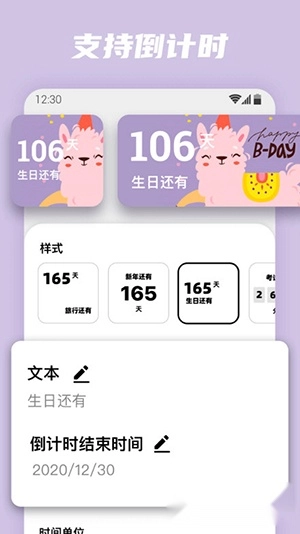 5、倒计时插件:可记录各类重要日子,支持自定义重要事件提醒,助您与我保持联系。