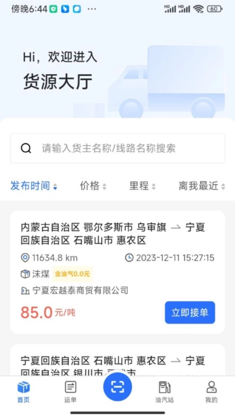 登录成功后进入首页,您就能查看平台上的货运订单。这些订单都详细标注了价格、地点以及运输要求,便于您依据自身需求挑选合适的订单。