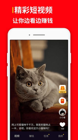 【金币红包】在红包短视频平台观看视频,每一秒都能获取收益,金币奖励源源不断,积累的金币还能兑换成现金并提现至微信。