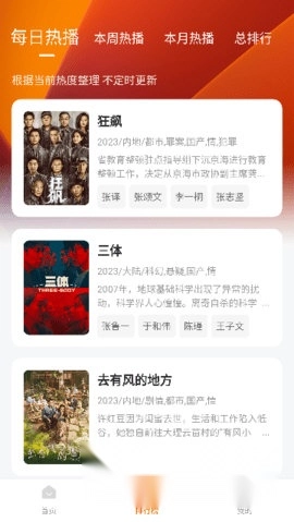 3、热门排行板块会实时更新各类热门影视,让你第一时间就能观看更多精彩内容。