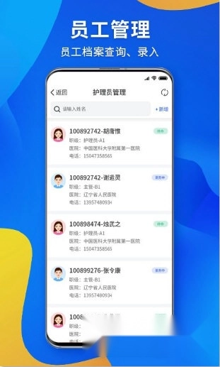 【人员查询】在管理护理员的过程中,能够查询任意人员的信息与业绩。
