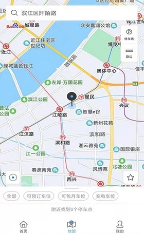 3、进入地图板块,借助地图查看各停车场的具体位置信息,然后前往停车场停车。