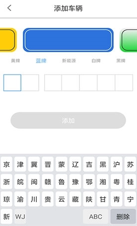 4、点击添加车辆,选择不同的牌照类型,输入自己的牌照信息,方便停车。