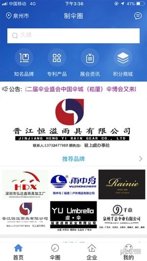 v2.2.5①雨具行业首次引入o2o线上线下信息交互系统,是行业内首个产业链生态集群,也是全网首家推出的制伞行业专属系统。②建立严谨完整的会员认证体系,通过加V、认证等层层审核,为服务受众群体提供最安全可靠的行业资讯。③信息发布系统紧密贴合行业脉搏与需求,创新性地设置了订单求购、现货求购、现货供应、招聘求职、厂房转让、招租、库存处理、招商合作等类别,筛选第一手实用信息,切实让每个人都能从中受益。④高瞻远瞩:《制伞圈》首页设有开阔的滚屏区域,展示精选的推荐品牌与新品,以高屋建瓴的视角,引领行业前沿视野。⑤构建社交人脉体系:具备评论、点赞、收藏、转发分享等功能。