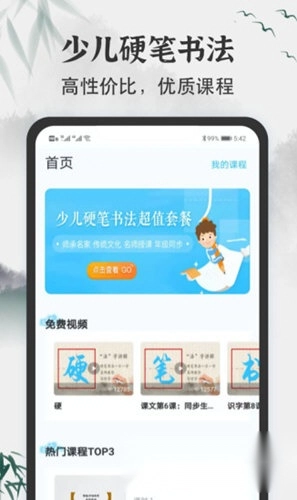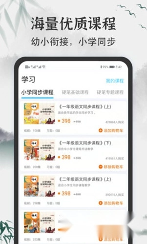 3、课程学习栏目内容丰富,涵盖小学同步课程、硬笔基础课程与硬笔专题课程等板块。