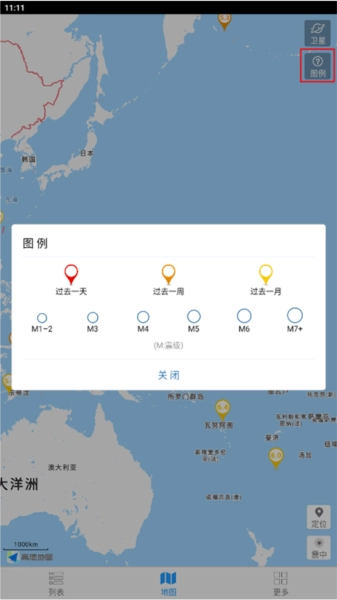 进入地震速报的“列表”页面后,点击右上角的“位置”图标就能完成定位。