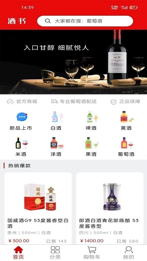用户可以在这里直接满足自身的各类需求,筛选时能查看不同品类,通过自主搜索输入各类酒水名称,更便捷地进行查找。