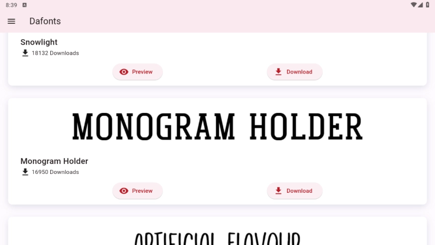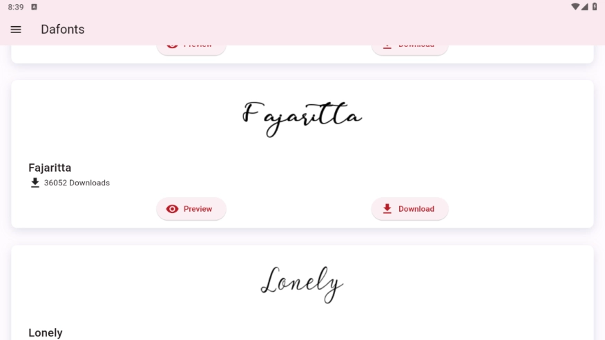 DaFont字体是一款字体替换工具,拥有丰富的热门字体资源供用户挑选。在这里你能找到心仪的字体,摆脱视觉上的单调感。这款软件操作便捷,用户可以自由使用各类版权字体,还能通过社交媒体分享给他人。