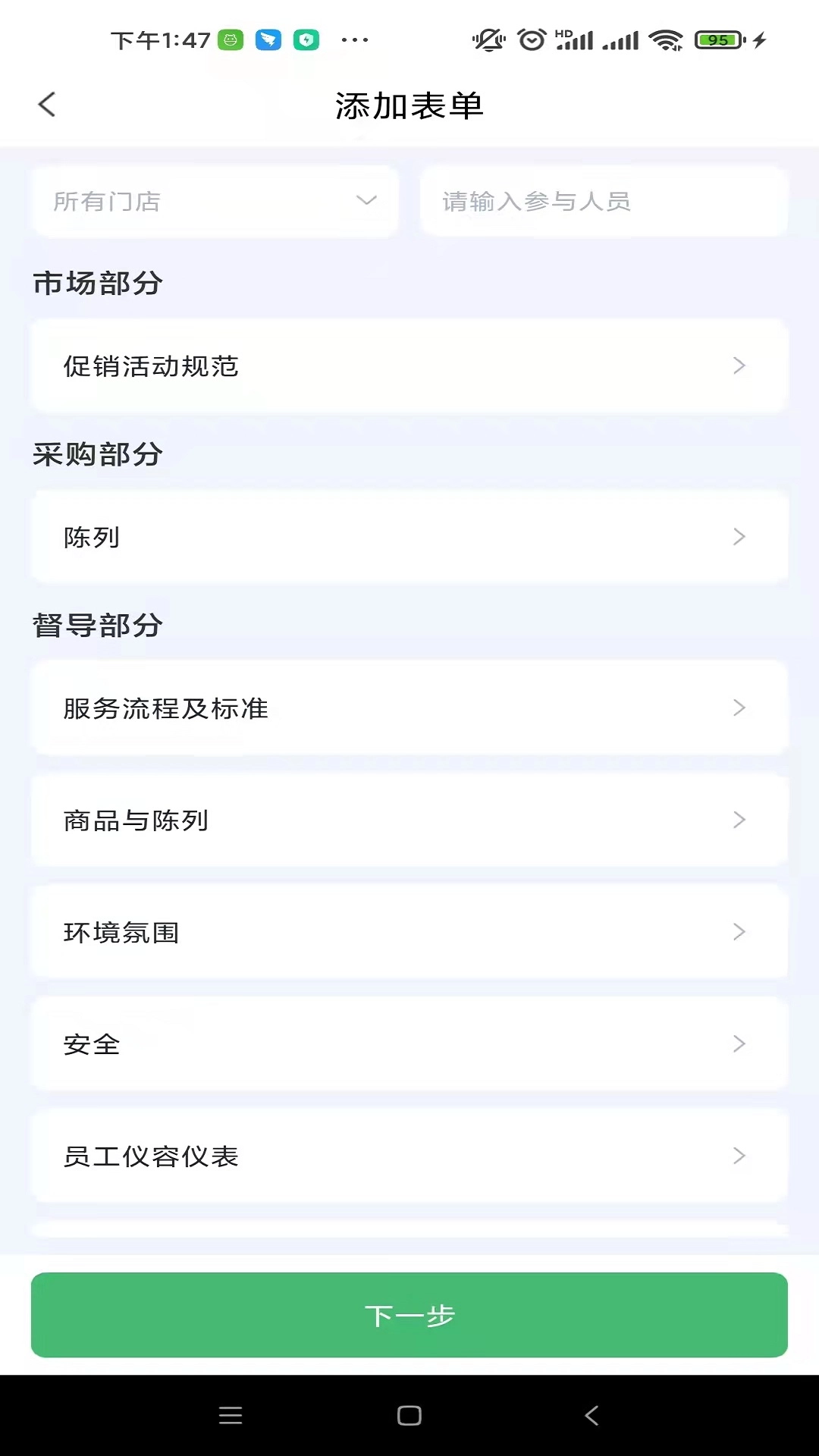 处罚门店的列表,也可选择门店来下发处罚表单,表单内容包含处罚种类,同时需要进行管理。